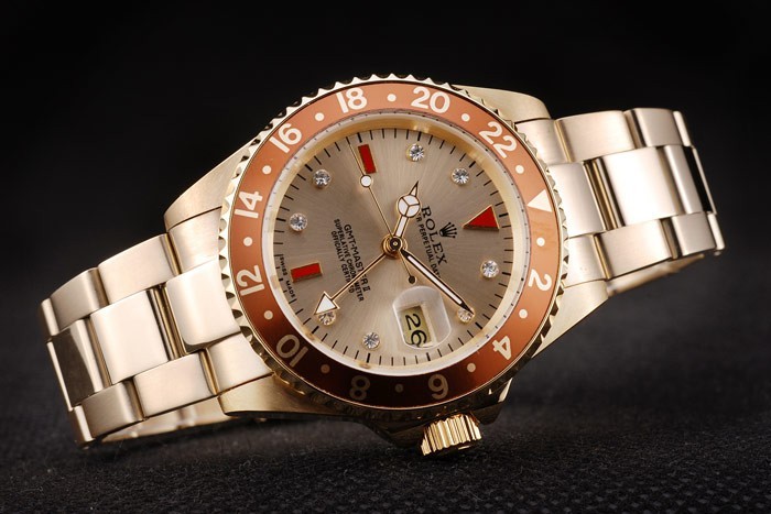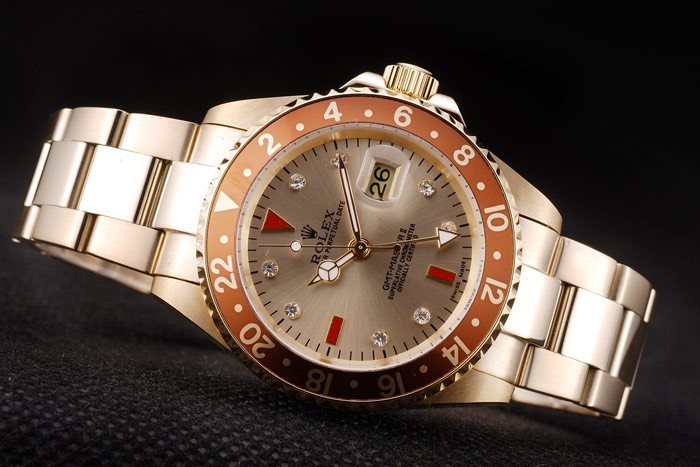 ロレックスGMTマスターIIゴールド色のセラミックベゼルゴールドダイヤルタキメーター