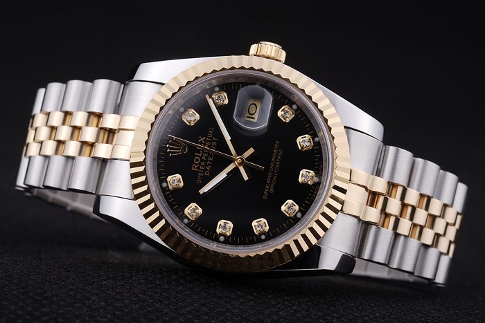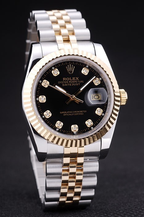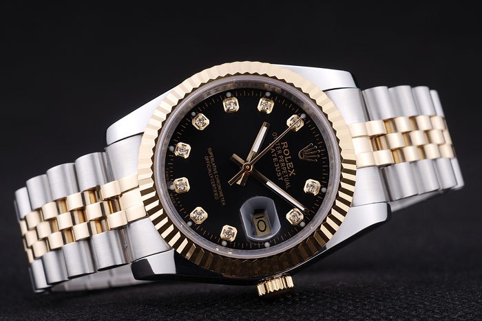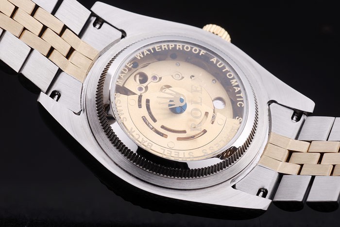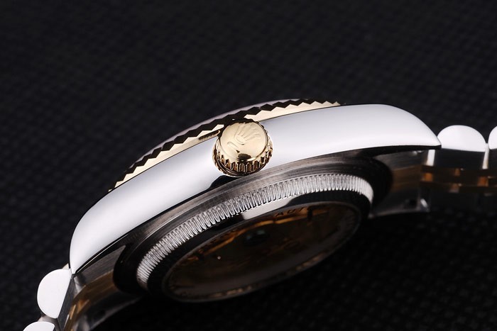 ロレックスのロゴ隠されたクラスプステンレススチールとイエローゴールドリンクブレスレット:ベゼル