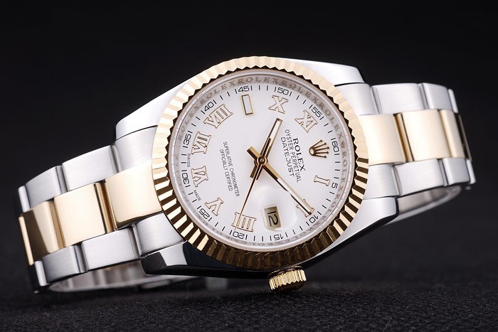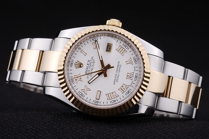 ロレックスのロゴの展開クラスプ付ステンレススチールとイエローゴールドリンクブレスレット