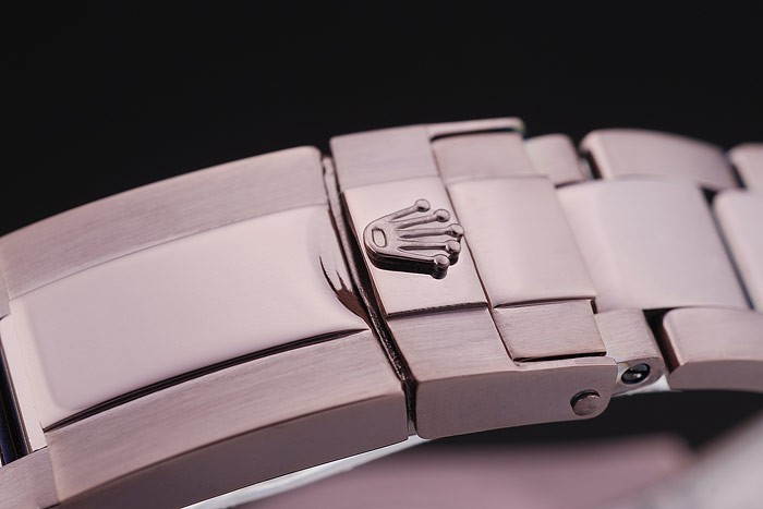 クラウン:ロレックスのロゴのいずれかの2つの小さなプッシュボタンカットワーク冠を持つバラ色の茶色のステンレス製のカットワーククラウンバンドタイプ