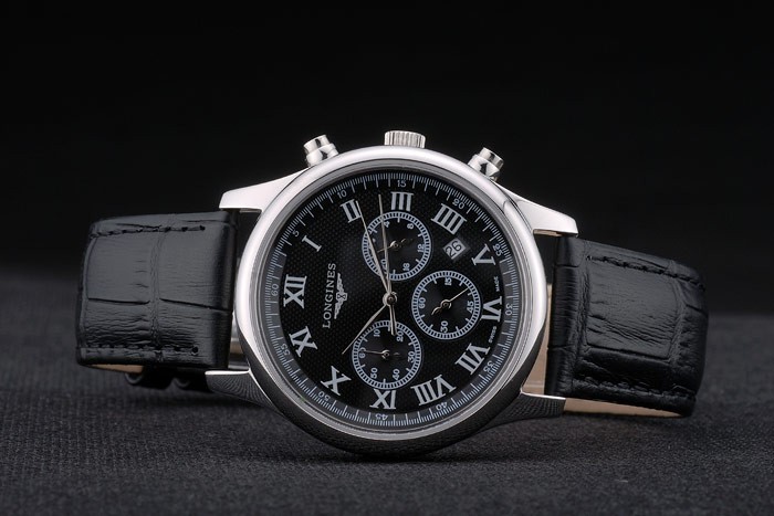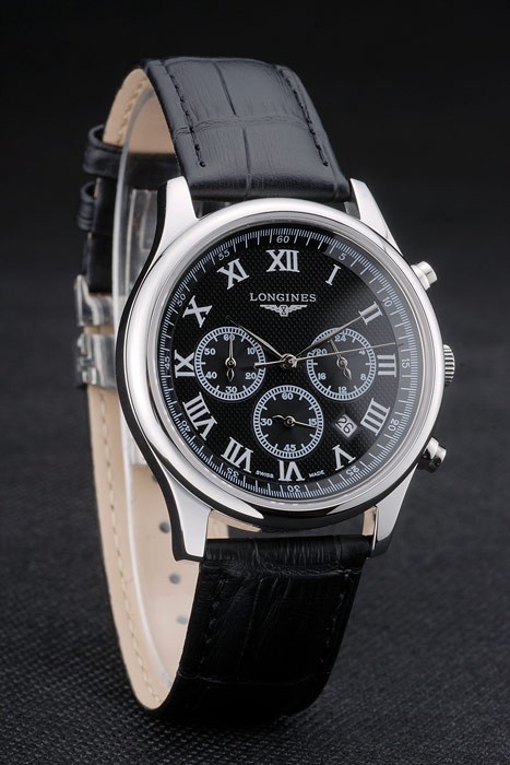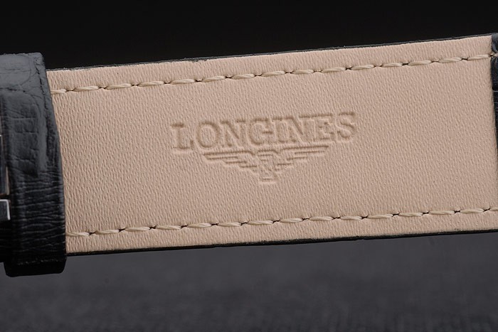 ポリッシュステンレススチールケース:ロンジン熱刻まれたロンジンのロゴと黒のワニ革ストラップをエンボス加工し、ブレスレットの長さ