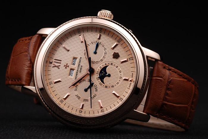 メッキケース:熱とブラウンワニ革ストラップは、スタンプヴァシュロン・コンスタンタンをエンボス加工し、ローズゴールドは、ヴァシュロン・コンスタンタンのロゴフック・バックルクラスプ