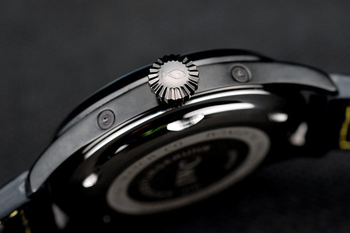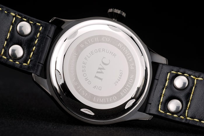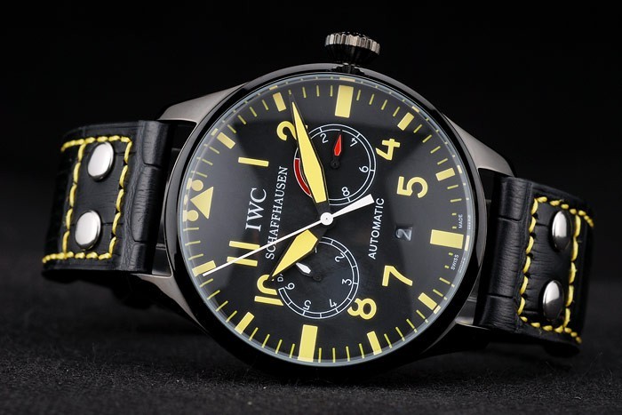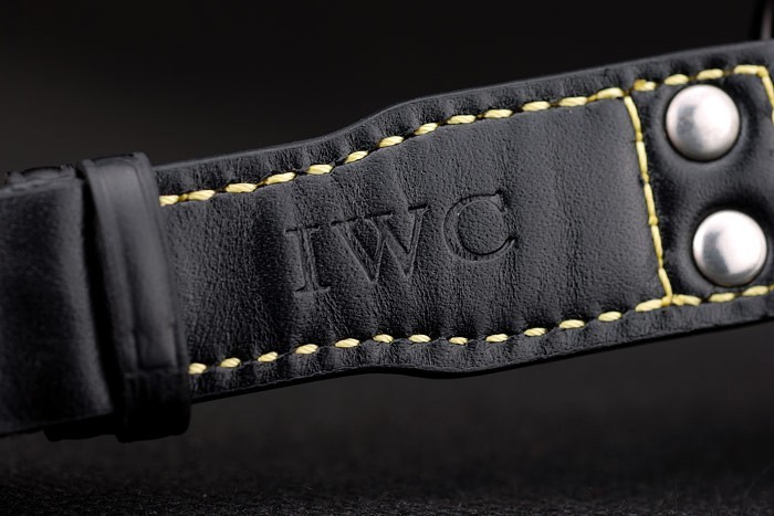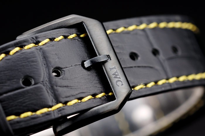 IWC熱が黄色縫合糸とIWC黒ワニ革ストラップは、イオンメッキステンレス鋼フックバックル留め