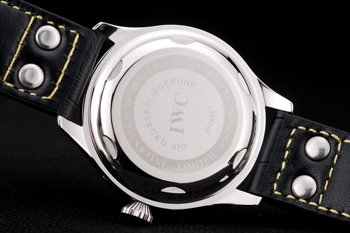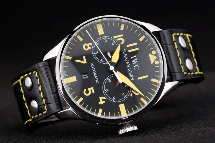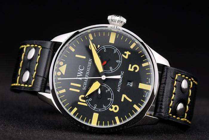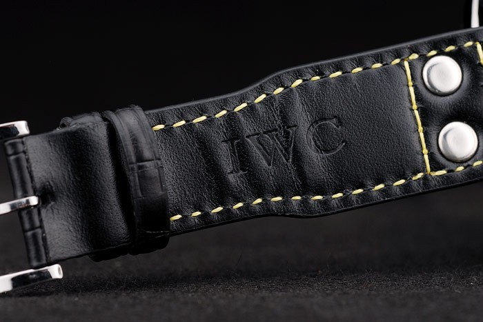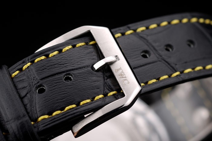 ケース:ブラッシュドステンレススチールケース< BR>ブレスレット:IWC熱が黄色糸ステッチと黒ワニ革ストラップをエンボス加工し、ステンレス鋼フックIWCクラスプ