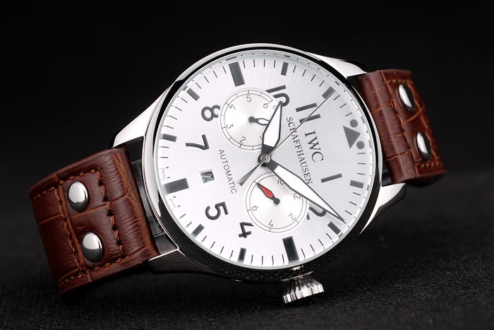 ブレスレット長起毛刻印IWCと茶色のワニ革ストラップをエンボス直径