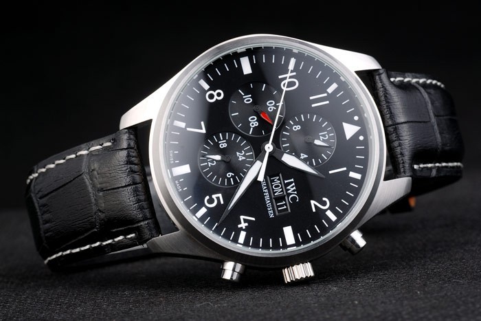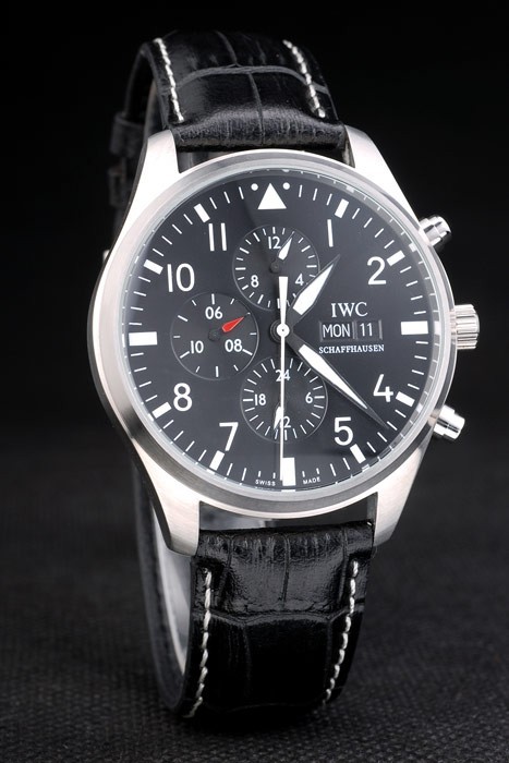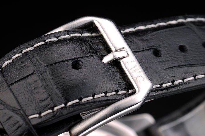 ステンレススチールケース:IWCシャフハウゼン熱は白い糸のステッチと黒ワニ革ストラップをエンボス加工し、IWCは、ステンレス鋼フックバックル留め