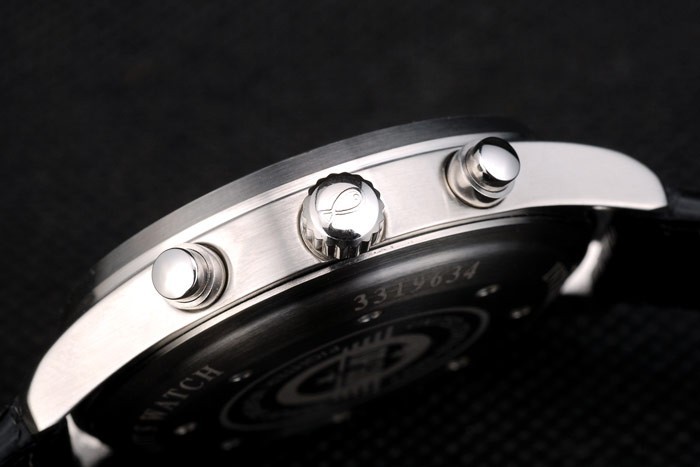 クラウン:IWCのロゴ彫刻と、それのいずれかの側にある2つの小さな丸い押しボタン式のクラウンとポリッシュステンレススチールカットワーク冠