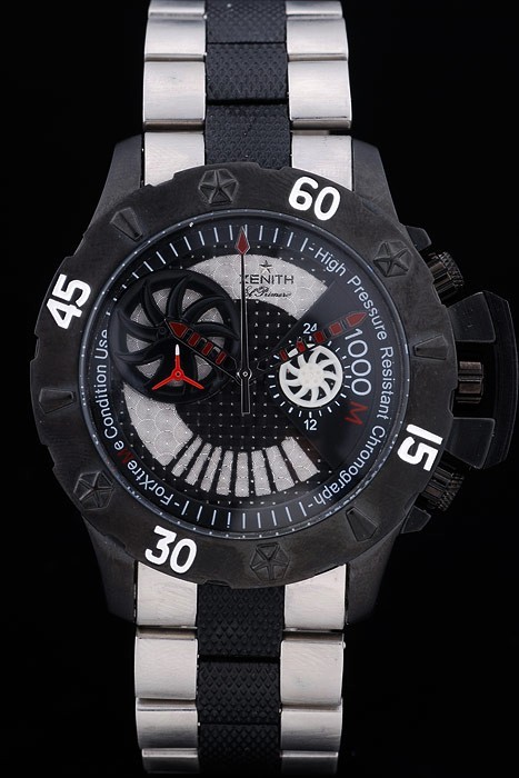 タグホイヤーモナコスイスのブラックレザーストラップブルー・イエローストライプブラックダイヤル